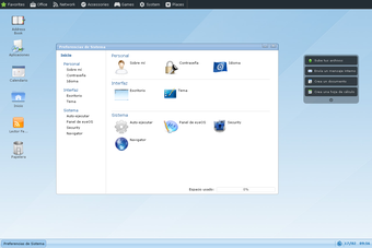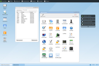 Con eyeOS tendrás a tu disposición los ficheros que hayas subido al sistema, además de aplicaciones básicas de navegación web, edición de texto, calculadora, sistema de mensajería, etc.